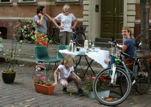In der Gneiststraße hatte Patrizia Flores, die hier in einem der Häuser der Wohngenossenschaft „Bremer Höhe“ wohnt, eine kleine Kaffeetafel improvisiert, an der sie Besucher der von ihr in Beschlag genommenen Parklücke bewirtete.