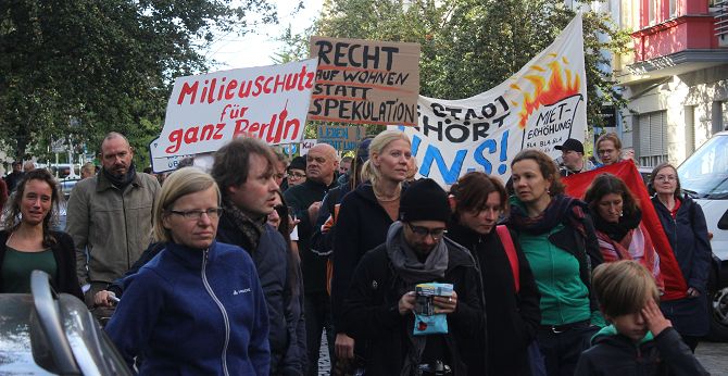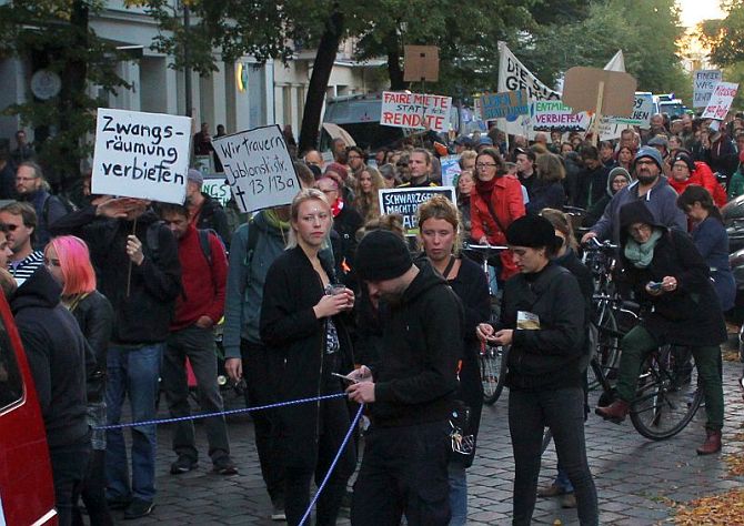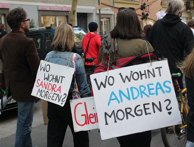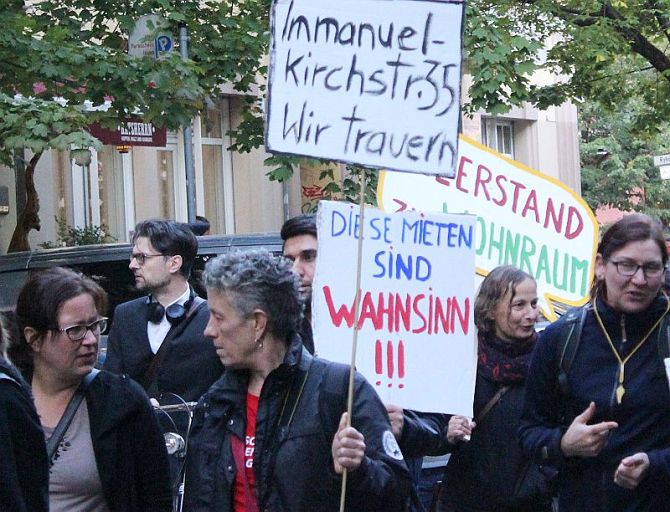 Mehr als 300 Menschen demonstrierten am Freitag gegen den galoppierenden Mietenwahnsinn durch Prenzlauer Berg. Dabei führte der Zug an mehreren Häusern vorbei, deren Mieter um ihre Wohnungen fürchten mussten – oder sie eben auch schon verloren haben.