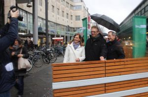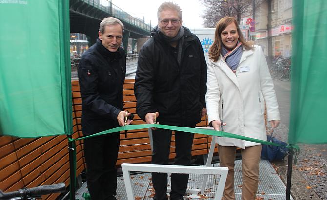 Plötzlich ging alles ganz schnell. Heute (Dienstag) um 9.36 Uhr versandte die Pressestelle der Senatsverwaltung für Umwelt, Verkehr und Klimaschutz die Meldung, dass um 13 Uhr das seit rund vier Wochen am S- und U-Bahnhof Schönhauser Allee herumstehende Parklet eingeweiht werden soll.