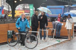 Auch die drei weiteren Parklets, die in den kommenden Tagen aufgestellt werden – eines vor dem Blumencafé in der Schönhauser Allee 127A sowie zwei vor der Kinderkunstgalerie Klax (Haus-Nr. 58A und 59A) – werden an der grundsätzlichen Situation in Sachen Fahrradparken erst einmal nichts ändern.