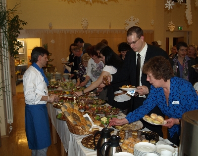 Im Reigen der Neujahrsempfänge war am Mittwoch die Seniorenstiftung Prenzlauer Berg an der Reihe. Die Stiftung ist Träger von vier Seniorenwohneinrichtungen in Prenzlauer Berg. Auf dem Empfang der Seniorenstiftung, deren Kuratoriumsvorsitzende die Pankower Sozialstadträtin Lioba Zürn-Kasztantowicz ist, trifft sich alljährlich die bezirkliche Polit-Prominenz. Und während die einen standesgemäß Ansprachen hielten, in denen die Erfolge des alten Jahres gewürdigt und die Hoffungen an des neue Jahr feierlich postuliert wurden, bildeten sich im Publikum zuweilen bemerkenswerte Zweckkoalitionen…