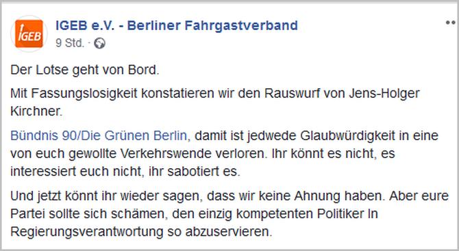 Diesen Eindruck hat auch der fahrgastverband IGEB, der auf Facebook den Vorgang so kommentiert: