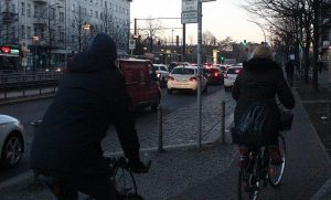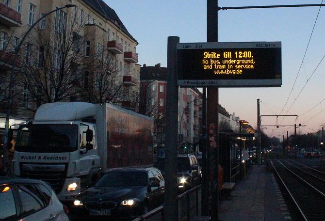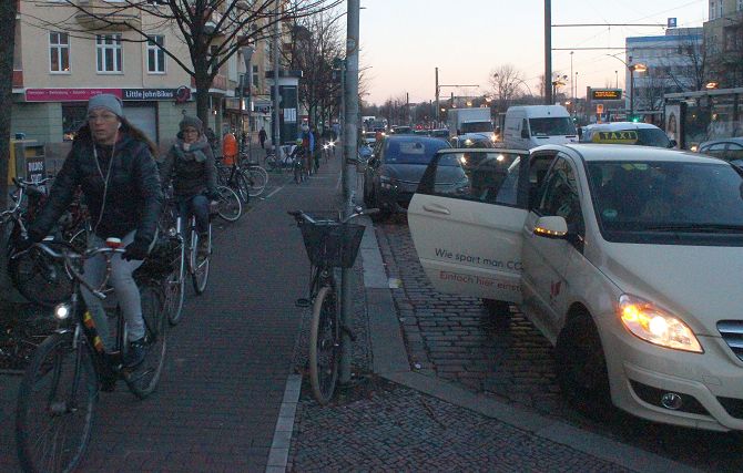 Die Prenzlauer Allee war – wie jeden Morgen zum Berufsverkehr – stadteinwärts gut befahren. Doch der Verkehr war flüssig, Staus gab es offensichtlich nicht. Was auffiel: Viele Taxis waren unterwegs und mehr Radfahrer, als in den vergangenen kalten tagen.