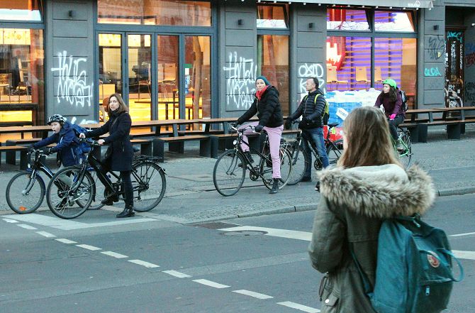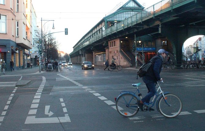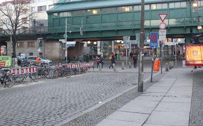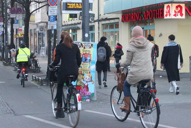 Auch auf der Schönhauser Allee hielt der Autoverkehr in Grenzen und schien das für diese Zeit normale Maß nicht zu überschreiten. Dafür Fahrräder, Fahrräder, Fahrräder.