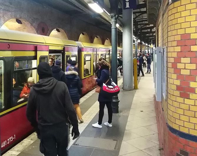 Auf dem S-Bahnhof Schönhauser Allee ein ähnliche Bild: Eine in jeder Hinsicht übersichtliche Zahl von Fahrgästen verlor sich auf dem Bahnsteig, die Züge hatten keine Probleme, die Leute zu transportieren.