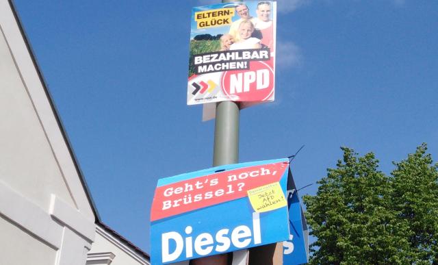 Die Straßenlaternen in Blankenburg sind zugepflastert mit Wahlplakaten von NPD und AfD. Die Rechtsextremen scheinen sich hier im Pankower Norden besonders viel zu versprechen.