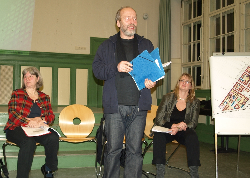 Zu Beginn der Anwohnerversammlung erinnerte Klaus Lemmnitz, Sprecher der Betroffenenvertretung des Sanierungsgebietes Bötzowstraße, an die „wilden“ Nachwendezeiten, als die Anwohner für die Sanierung ihres damals heruntergekommenen Viertel stritten: „Ich habe da mal in alten Aufzeichnungen gekramt. November 1991: ‚Straßenblocke Hufeland-/Ecke Bötzowstraße‘. Da kann man mal sehen, wie sich die Zeiten gändert haben.“ Und: „Dies hier ist keine Protestversammlung, sondern eine ganz konstruktive Veranstaltung.“ Nun ja, wenn am Dienstagabend auch keine Kreuzungen mehr blockiert wurden – kritisiert und protestiert wurde dennoch.