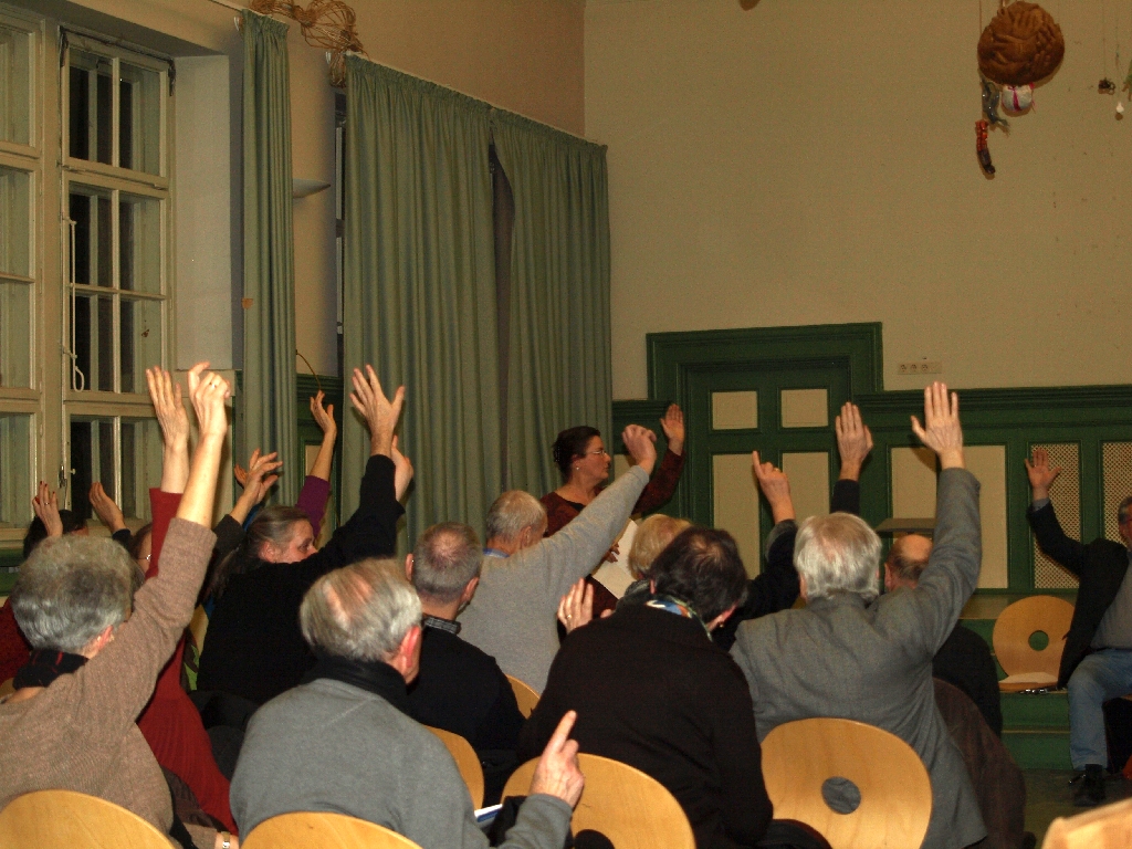 Am Schluss der Versammlung stimmten Anwesenden mit großer Mehrheit und nur einer Gegenstimme und drei Enthaltungen einer Erklärung zu, in der der Erhalt des Sanierungsgebietes gefordert wird (siehe Download unten). Die Erklärung soll an den Petitionsausschuss des Berliner Abgeordnetenhauses weitergeleitet werden.
