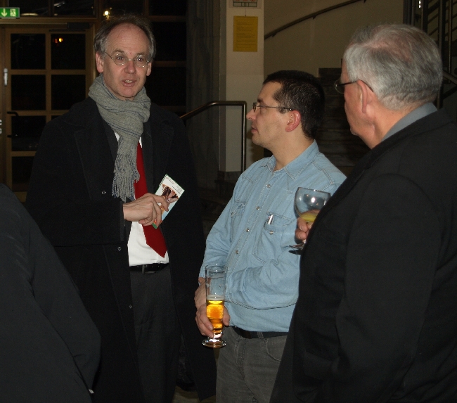 Der Stadtrat für Kultur, Wirtschaft und Stadtentwicklung Michail Nelken im angeregten Gespräch – möglichweise über das Motto des nächsten Pankower Wirtschaftstages, der Ende Mai im Planetarium stattfinden soll.
