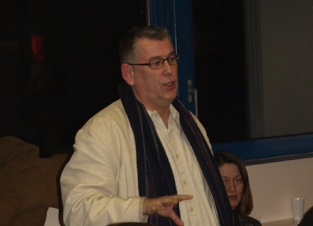 Der alte Brecht hätte aus diesem Stoff mit Sicherheit eines seiner klassischen Lehrstücke geformt, Volker Braun möglicherweise einen postkommunistischen Schelmenroman verfasst. Frank Bertermann, in Mitte Fraktionschef der Grünen, die in der BVV als Zünglein an der Waage darüber entscheiden können, ob im Mauerpark überhaupt gebaut wird oder nicht… – Frank Bertermann schlug sich auch nicht schlecht. Statt Roman oder Lehrstück zauberte er im Angesicht des ausgehenden, äußerst erlebnisreichen Abends einen deftigen Witz aus dem Hut – und der ging so: „Wir werden unsere Entscheidung vom Verlauf und Abschluss der Bürgerwerkstatt abhängig machen.“