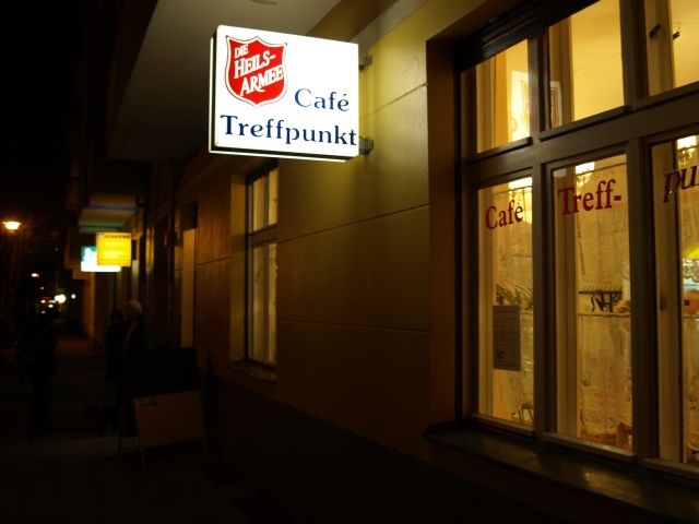Denn das „Café Treffpunkt“ in der Kuglerstraße ist eine Sozialstation der Heilsarmee.