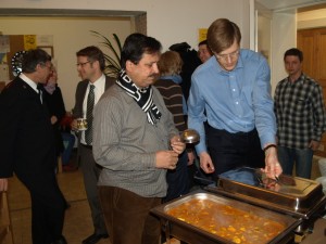 Und weil er auch noch stellvertrender Vorsitzender des CDU-Ortsverbandes Schönhauser Allee ist, bringt er dann stets ein paar Parteifreunde mit, die ihm bei Austeilen des Essens zur Hand gehen. Auch sie sind der Heilsarmee schon länger verbunden – so geht der Erlös des vierteljährlichen Preisskats des Ortsverbandes regelmäßig an das Café Treffpunkt.
