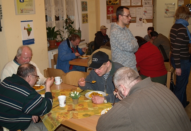 Und das Essen, das gereicht wird. Oder zumindest einen Teil davon. Denn bei den bis zu achtzig Gästen, die täglich das „Café Treffpunkt“ besuchen, würden die 5.135 Euro, die Siegfried Fischer im Jahr für Speis und Trank zur Verfügung stehen, wohl nur für wenige Monate reichen. Also ist er auf Spenden angewiesen.
