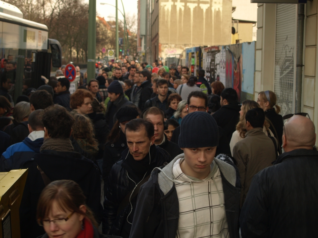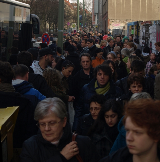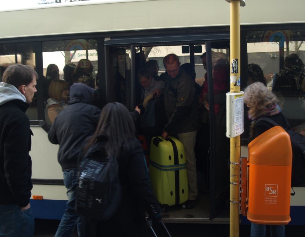 Prenzlauer Berg, Wichertstraße, nahe der Greifenhagener Straße, am Samstagnachmittag: Was wie eine veritable Großdemonstration von zu allem entschlossenen „Wutbürgern“ aussieht, ist bloß der normale Fahrgastwechsel beim Schienenersatzverkehr der Berliner S-Bahn. Aber was heißt hier „Wechsel?“ Zwar steigen Fahrgäste aus und ein – doch der überwiegende Teil der Wartenden bleibt wegen Überfüllung des Gefährtes vom Transport einstweilen ausgeschlossen.