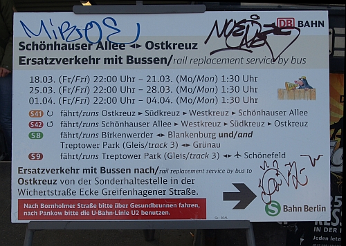 Die S-Bahn hat über das Wochenende die Ringbahn zwschen Ostkreuz und Schönhauser Allee stillgelegt und lässt stattdessen Busse rollen.