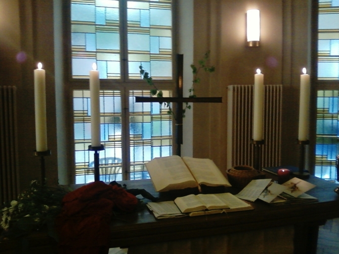 Doch schon beim Betreten des Gebetsraumes wird dem Ankömmling klar: Auch das hier ist irgendwie anders. Direkt vor den Kirchenbänken ist ein Buffet aufgebaut, zusammengestellt aus Mitgebrachtem und Hausge-