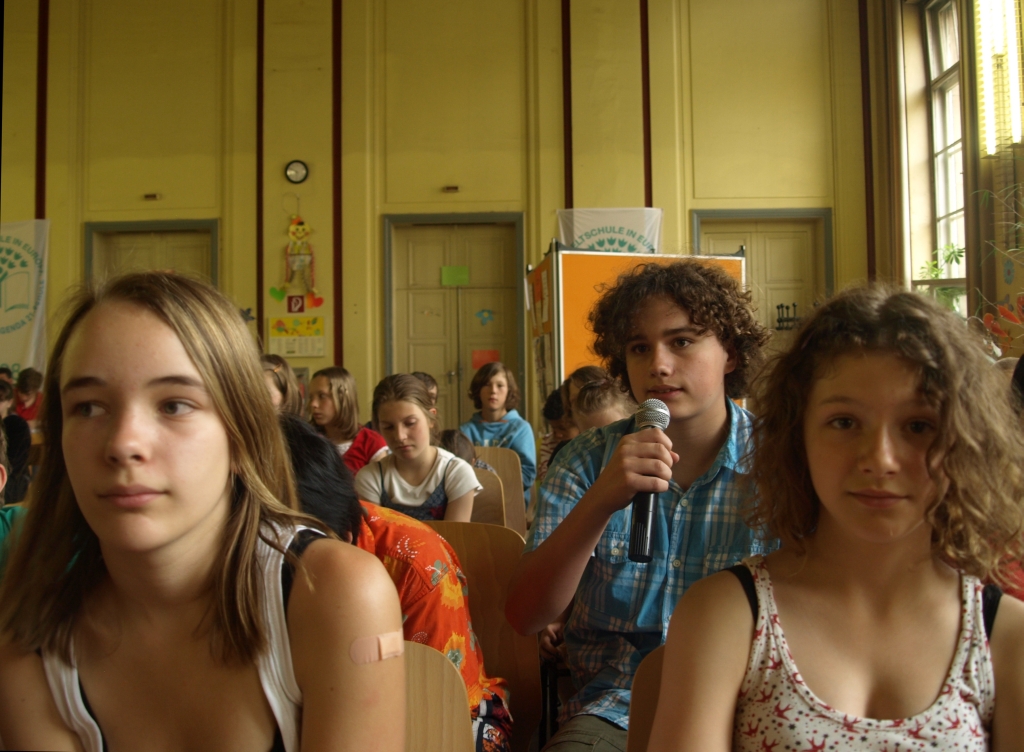 Dann durften Fragen gestellt werden und die Schüler waren selbstbewusst genug, nicht nur brav zum Thema die Stimme zu erheben. Wenn denn schon mal Politikprominenz vor Ort ist… .