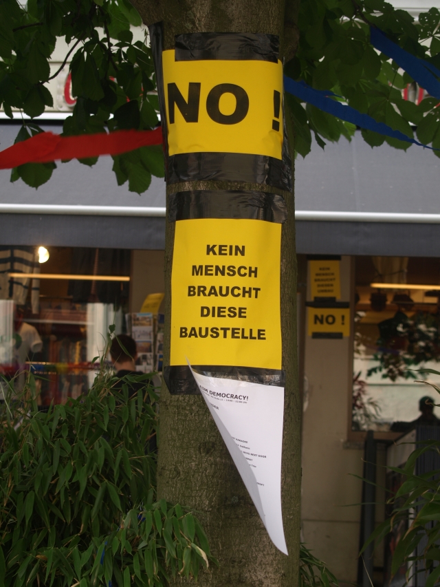 Ansonsten weiß ich auch nicht, was die Baustopp-Leute wollen. Es gibt ja Baustopp-Leute, die eine Sharedspace-Zone wollen, anderen wollen alles so lassen wie es ist, die dritten finden die Autos auf den Gehwegen blöd, die vierten fordern freie Autofahrt für freie Bürger und die vierten outen sich als Rassisten und diffamieren aus Baden-Württemberg stammende Frauen mit Kindern. Das sind schon sehr unterschiedliche Interessen, die dahinter stehen.