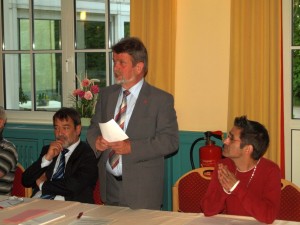 Das Ergebnis war eindeutig: Von dreißig gültigen Stimmen fielen dreißig auf Alex Lubawinski (Bildmitte), den einzigen Kandidaten des Abends. Damit hat die Sonder-Wahlkreiskonferenz der drei Nordabteilungen (Ortsverbände) der Pankower SPD ein klares Votum darüber abgegeben, wer nach ihrem Willen im