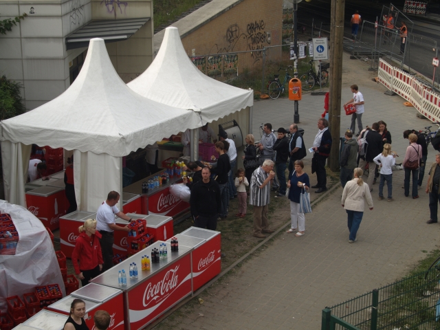 Die Leute, die am späten Freitagnachmittag den U-Bahnhof Pankow verließen, sahen sich plötzlich freundlichen jungen Menschen gegenüber, die ihnen Cola, Mineralwasser oder Brause, und gegen den kleinen Hunger eine Bratwurst anboten – versehen mit dem Hinweis, dass es „oben“ nicht nur noch mehr davon gäbe, sondern dass dort auch in Kürze Kurt Kriegers Infobox eröffnet werde: Man sei herzlich dazu eingeladen, dem beizuwohnen.