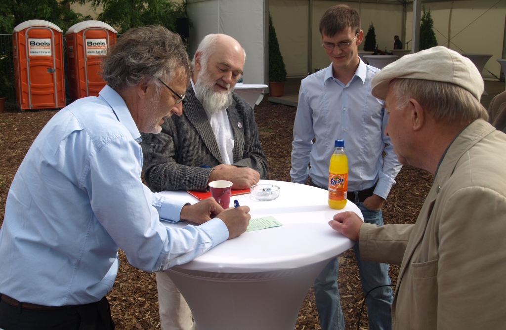 neten Thomas Brandt (zweiter von links) leuchteten geradezu die Augen, als Kurt Krieger einen Mitgliedsantrag für ihren Verein „Für Pankow e.V.“ ausfüllte.