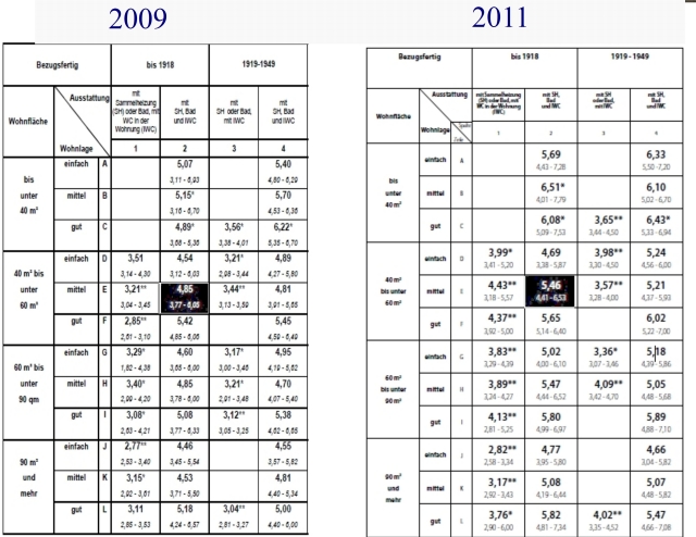 wohnung – im Mietspiegel von 2009 noch 4,85 Euro, so sind in der 2011er Tabelle bereits 5,49 Euro verzeichnet – eine Steigerung von fast 13 Prozent in nur zwei Jahren!