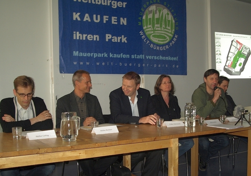 Doch 5. Mai konnten die Initiatoren zumindest schon einmal die Anerkennung als gemeinnütziger Verein vermelden – und ihre Stiftungsräte vorstellen. Neben dem Journalisten Peter Unfried (taz) und Stefan Richter von der Grünen Liga hatten sich Volker Ratzmann (Grüne) Stefan Liebich (DIE LINKE) und der ehemalige Berliner Stadtentwicklungssenator Volker Hassemer (CDU) zur Verfügung gestellt. Und dennoch war der Start der „Stiftung in Gründung“ weniger furios, als von ihren Gründern erhofft: Wenige Tage nach dem offiziellen Vorstellungstermin lud die „Weltbürgerparkstiftung“ selbstbewusst zu einer „Vollversammlung“ in das Amphitheater des Parks (Fassungsvermögen: rund 1.000 Personen) ein. Es kamen aber geade mal knapp fünfzig Interessierte.