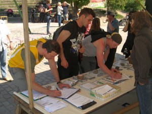 Gerade jene Personen, die die Stiftung initiierten, sind nicht überall en vogue. Allen voran Heiner Funken, einer der kompromisslosesten Gegner von Mauerparkbebauung und “Bürgerwerkstatt”. Wenn er einmal in Fahrt gerät, treibt es zuweilen den engsten Mitstreitern den Schweiß auf die Stirn. Dabei hatte der Bürgerverein Gleimviertel ihn selbst dereinst als einen von zwei Vereinsvertretern in die Gothewerkstatt geschickt. Doch eine wie auch immer geartete Mitarbeit an einer Bebauung kam für ihn nicht in Frage, also trat er unter Protest aus. Später ließ man ihn nicht mehr herein. Er insistierte in seinem Gleimviertel-Verein so lange, bis eine Mehrheit den offiziellen Austritt des Vereins aus der Bürgerwerkstatt beschloss. Auf Veranstaltungen welcher Partei auch immer konnte man sicher sein: Gleich taucht Funken auf, und fragt: “Wie haltet ihr es mit dem Mauerpark?” Und als im Mai der Hauptausschuss des Berliner Abgeordnetenhauses zum ersten Mal eine Freigabe von 200.000 Euro zur weiteren Finanzierung der Bürgerwerkstatt vertagte, da hatten die Stiftung und er selbstverständlich auch versucht, auf die Entscheidung Einfluss zu nehmen. (siehe Download: Stiftung an Hauptausschuss).