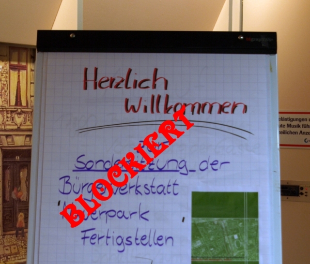 sprechenden Areale befinden, derzeit keine Mehrheit für eine Zustimmung zur Bebauung vorhanden ist, ruht das B-Planverfahren. Nach Ansicht weiter Teile der SPD soll die „Bürgerwerkstatt“ dennoch weitergeführt werden. Die Partei DIE LINKE ist gegen eine Fortführung. Laut Koalitionsvertrag der beiden Regierungsparteien wird über eine Vorlage im Ausschuss immer dann nicht abgestimmt, wenn eine der beiden Parteien sich gegen die Vorlage ausspricht.