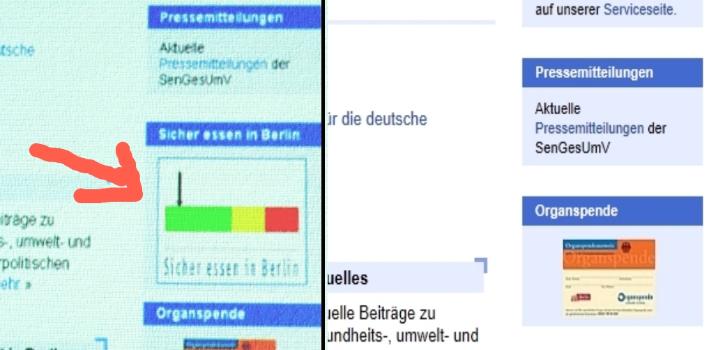 Mittlerweile (Montag) ist der Link nun ganz verschwunden (Bild unten). Und wer die Linkadresse kennt (http://www.berlin.de/sen/verbraucherschutz/lebensmittel-ernaehrung/kontrollergebnisse/index.de.html), findet nurmehr den Hinweis „Diese Seite befindet sich