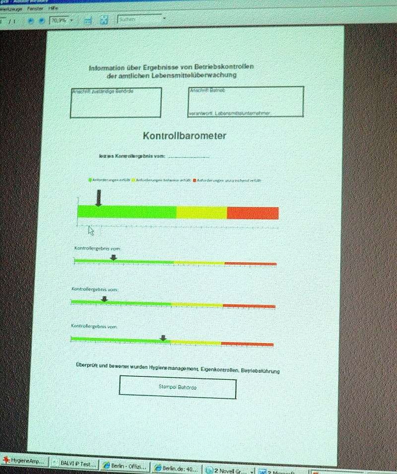 Mit dem Inkrafttreten des neuen Verbraucherinformationsgesetzes (voraussichtlich 1. Quartal 2012) sind die Gaststätteninhaber verpflichtet, das „Barometer“ an sichtbarer Stelle auszuhängen.