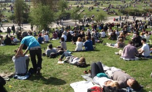 narbter Grünzug, auf dem man zuweilen das Gras vor lauter Menschen nicht sieht – eine einzige Freakshow, mit all den Verrückten, die diese Stadt zu bieten hat – also: Mit uns.