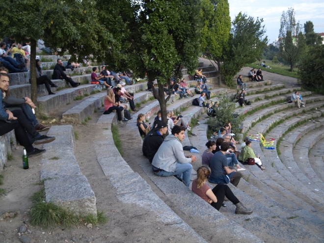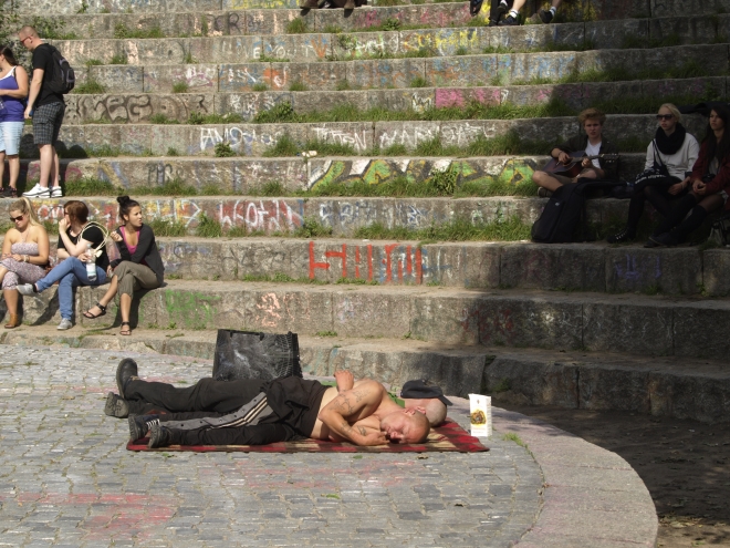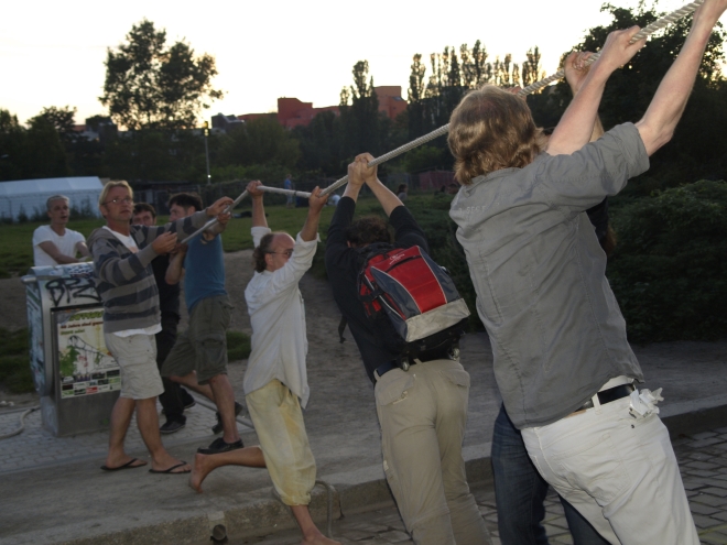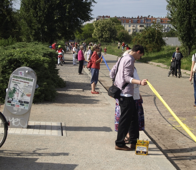 Wieviel Leute nun an der Menschenkette zur Erhaltung der Grünzüge teilgenommen hatten, war nicht herauszufinden – auch nicht, ob sie nun wie geplant „vom Park am Nordbahnhof (bis) zur Schönholzer Heide“ reichte. Bestätigt werden kann hier aber: Sie durchquerte den Mauerpark fast vollständig.