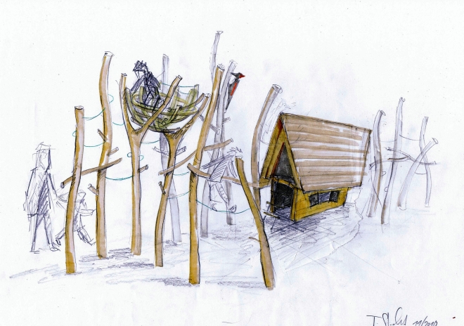 bäcker und eine Asthaufenkonstruktion zum Klettern und Krabbeln samt Buddelsandfläche werden ein Stück weiter zu finden sein. Eine große Attraktion für die Kinder (ob auch für die Eltern, wird sich zeigen) wird der Wasserlauf sein, der direkt im Sand endet – ideal für die Herstellung von Eier-