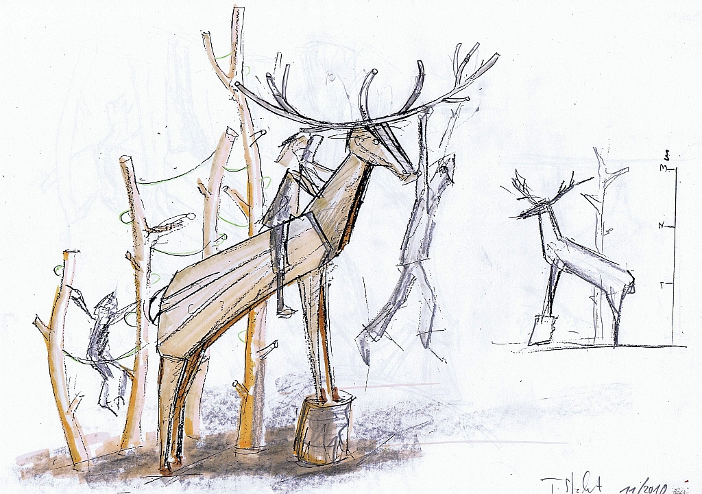 pampe jeglicher Konsistenz. Schaukeln werden natürlich auch aufgestellt, eine „Balancierkombination“ ist ebenso vorgesehen, wie Tischtennisplatten, eine Kletterwand und – schließlich handelt es sich um den neuen Hirschhof – ein großer Hirsch. Der ist nicht, wie sein derzeit unzugänglicher Nachbar, aus Metall, sondern aus Holz und zum