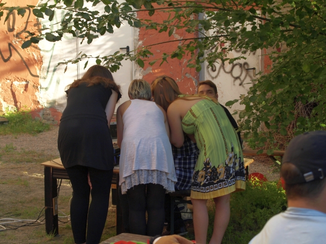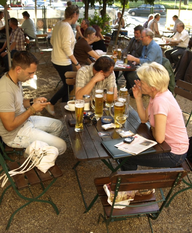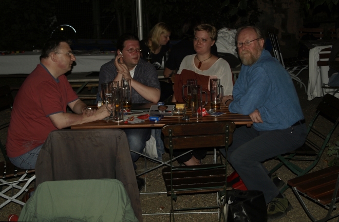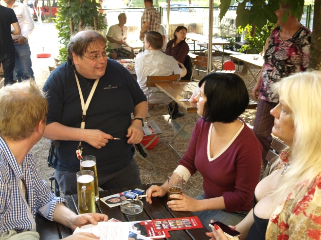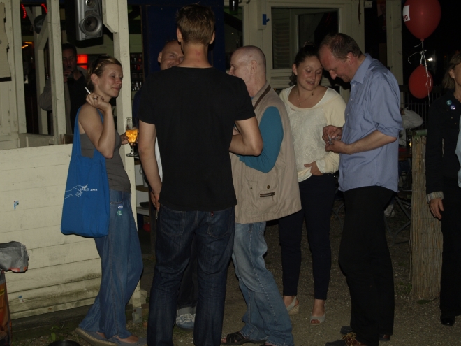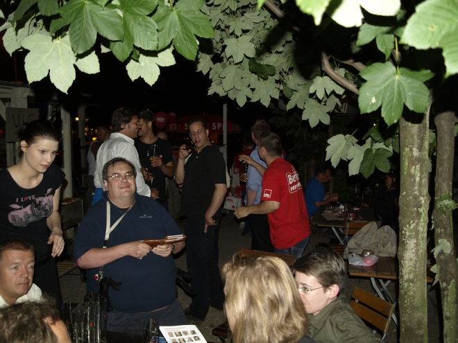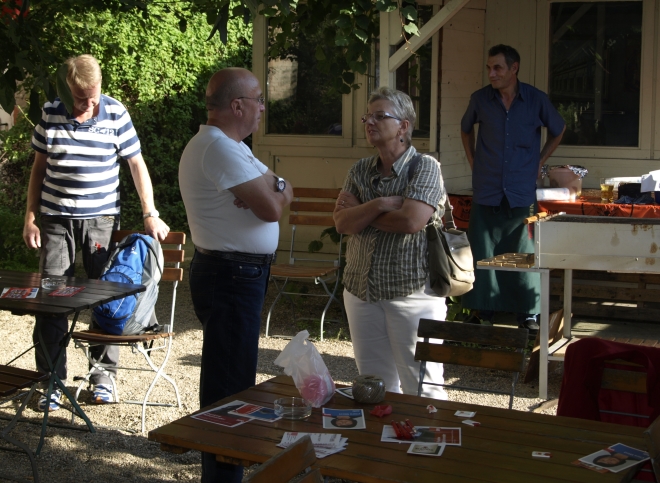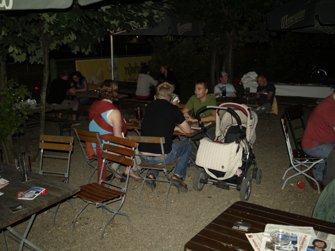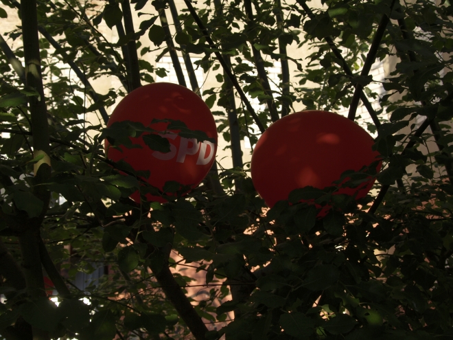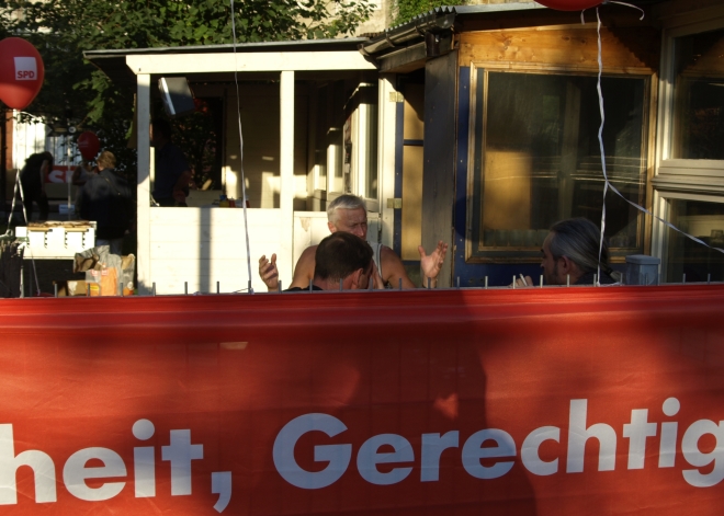 Ausgerechnet auf dem Grundstück der letzten Ruine im Viertel um die Naugarder Straße sommerfestete noch einmal fast alles, was in der Pankower Sozialdemokratie Rang und Namen hat. Pünktlich zum Anstich des Freibierfasses erschienen Genossen und Gäste aus der Umgebung sowie die SPD-Direktkandidaten des Bezirks im Garten der Gastwirtschaft „Kolonie“. Mit abnehmendem Füllstand der Tonne fühlte man sich mehr und mehr um ein Jahrhundert zurückversetzt: So ungefähr mussten die legendären Gartenfeste der Sozialdemokraten vor dem ersten Weltkrieg gewesen sein. Als dann noch Erich Mühsam erschien, war die Verwirrung perfekt: Was macht der bei der SPD? Aber dann war es doch bloß Wolfgang Thierse. Schade eigentlich…