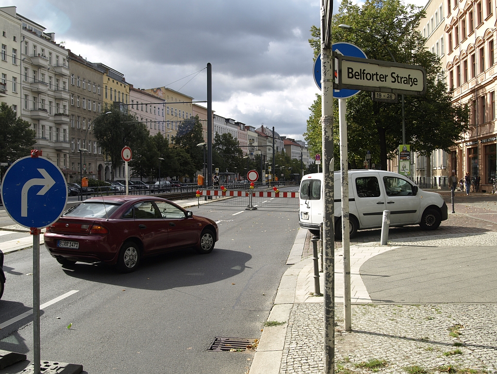 Die stadteinwärts führende Fahrbahn der Prenzlauer Allee ist zwischen der Belforter und der Metzer Straße seit heute (Donnerstag) Vormittag vollständig gesperrt. Der Grund der Sperrung sind defekte Schächte der Berliner Wasserbetriebe in der Mitte der Fahrbahn, deren Reparatur unverzüglich in Angriff genommen werden mussten.