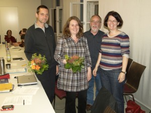 Cornelius Bechtler und Daniela Billig neben den scheidenden Fraktionsvorsitzenden Peter Brenn und Stefanie Remlinger