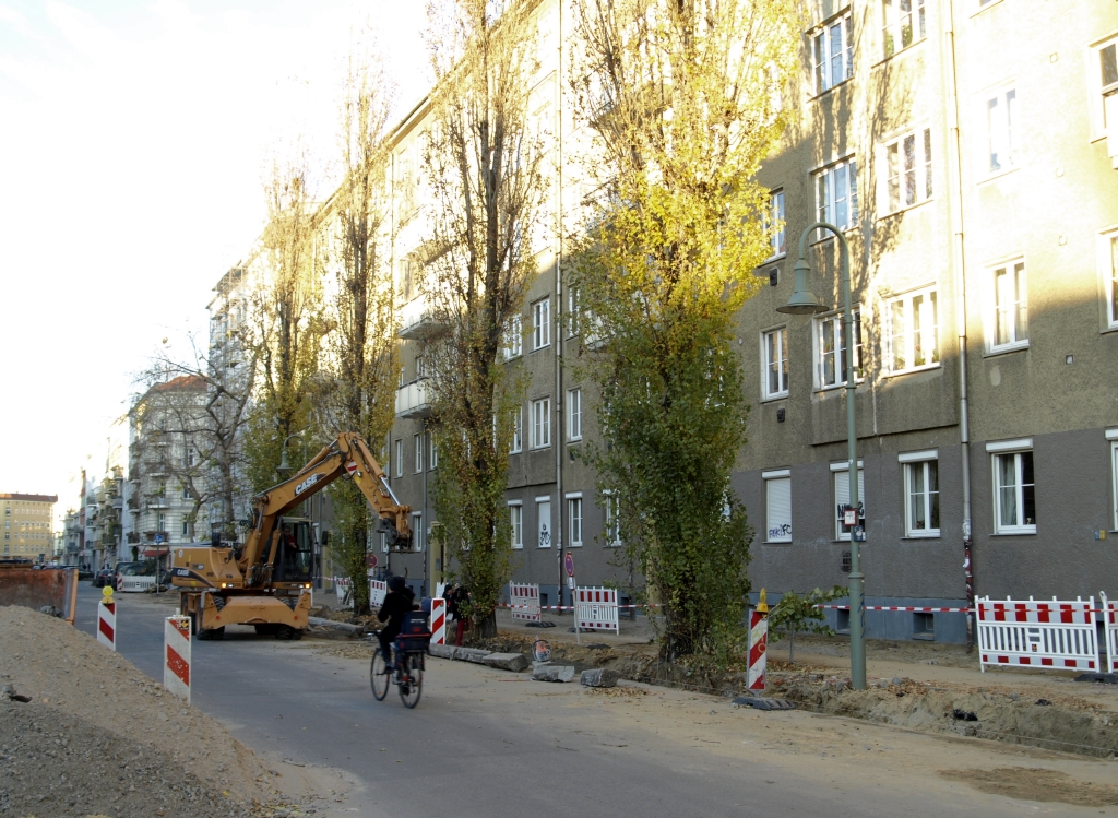 Im Zuge der Gehwegerneuerung in der Knaackstraße werden voraussichtlich am 2. Dezember die vor den Häusern 62, 64 und 66 stehenden vier Pappeln gefällt. Das teilte das Bezirksamt Pankow mit. In einer Pressemitteilung, deren Unterzeile lustigerweise „Verkehrssicherheit von vier Pappeln gefährdet“ lautet, wird dazu folgendes kund getan: