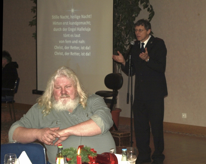 Zum fünften Mal richteten die Heilsarmee-Korps Berlin-Mitte und Berlin-Prenzlauer Berg zusammen mit dem Hotel Maritim proArte eine Weihnachtsfeier für Obdachlose und Bedürftige aus. Mit dabei waren auch Bundestagsvizepräsidentin Petra Pau, der Pankower Abgeordnete Alex Lubawinski und Präsidentin des Ambassadors Club e. V. Mania Feilcke, die zuvor zusammen mit anderen bekannten Politikern des Bezirks Pankow auf dem Kollwitzplatz Geld für die Feier gesammelt hatten.