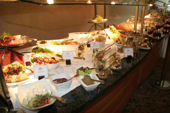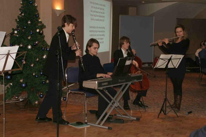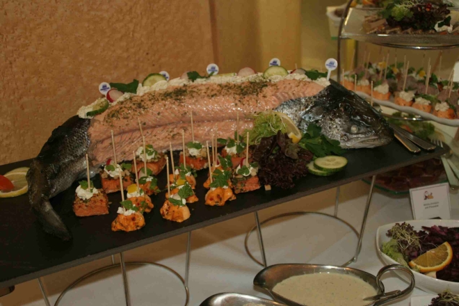Auf der Karte standen unter anderem Gänseleberterrine im Pastramimantel, Entenrilettes auf Brioche und Seelachsfilet mit Muschelsauce. Das Programm bestritten junge Künstler der un Pankow ansässigen Musikakademie zur Förderung musikalisch Hochbegabter.