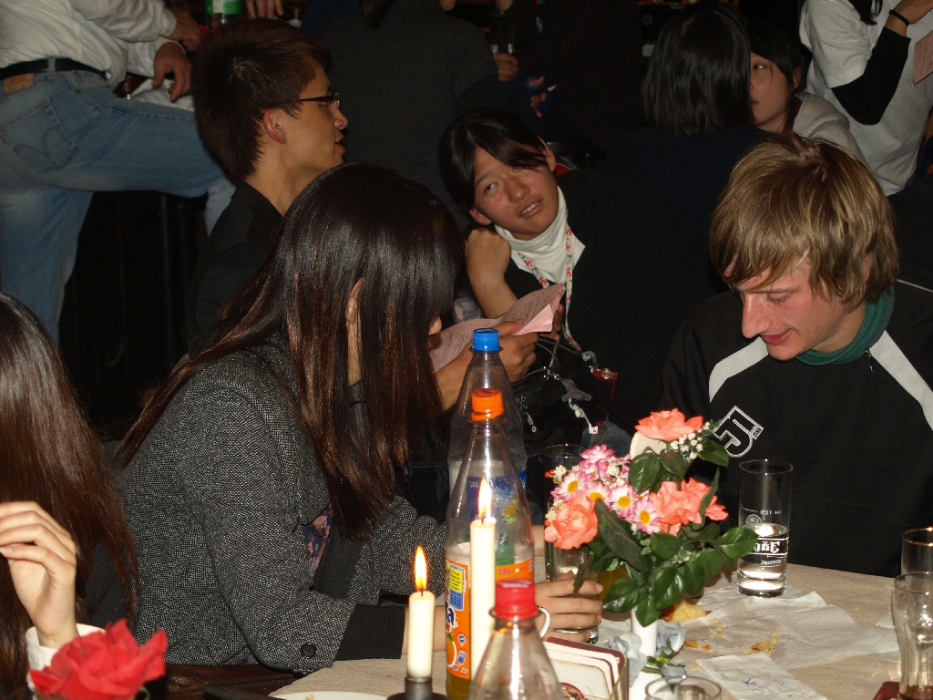 Zum Trainingsende wurden – essbare – japanische Souveniers an die Kinder verteilt und deutsch-japanische Mannschaftsfotos geschossen. Dann begaben sich die Trainer, die bei Rotation allesamt ehrenamtlich arbeiten, zusammen mit den japanischen Ehrenamtlern in die nahe gelegene Vereinsgastätte von Rotation. Nach offiziellen Ansprachen, Wimpel – und Geschenketausch wurde Atmosphäre immer lockerer und bei vielen Gesprächen musste nicht einmal ein Dolmetscher in Anspruch genommen werden. Man sprach gemeinsam englisch.