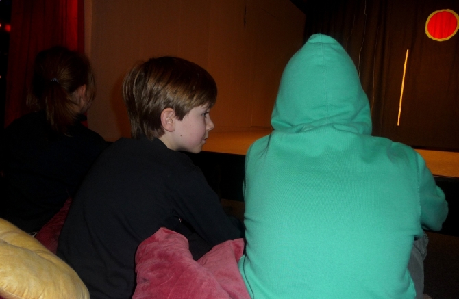 Als das Saallicht erlischt gucken leuchtende Kinderaugen gebannt auf die kleine Bühne. Und auch die älteren Semester verharren in erwartungsvoller Spannung. Schließlich erscheint „Britta, die kleine Ratte“ in einem kleinen runden Fenster im Vorhang und verzaubert sofort jung und alt.
