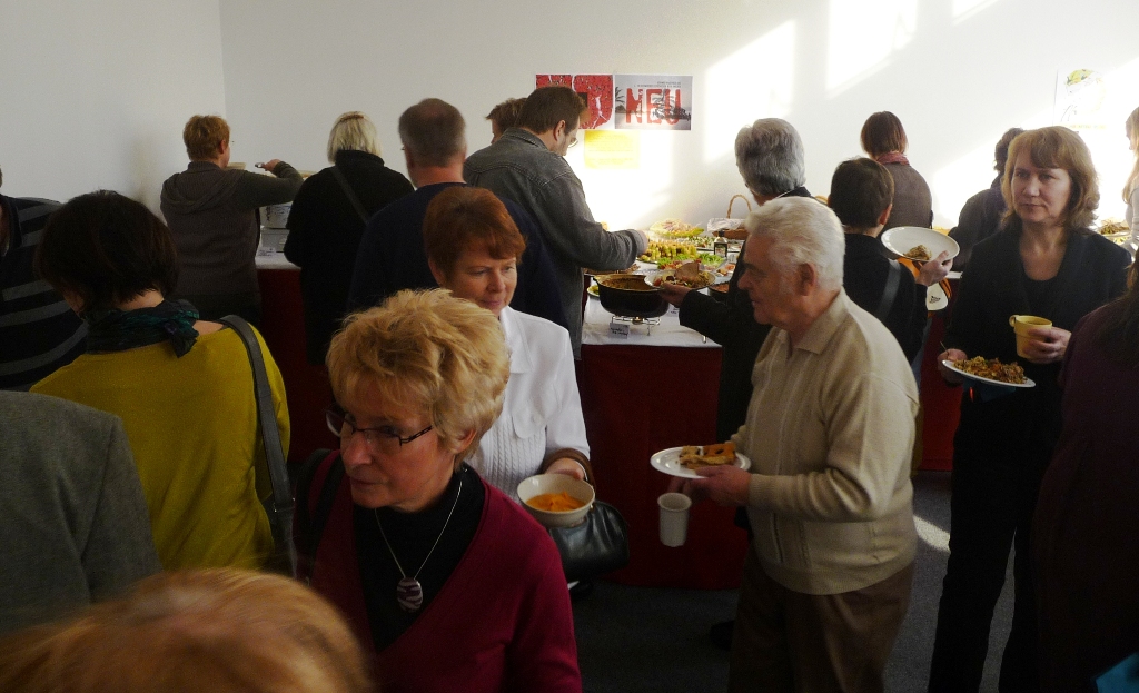 Ein kurzes Verschnaufen am Buffet, noch einen Lacher in der Kehle, noch eine persönliche Widmung von Walfriede Schmitt ins frisch erstandene Buchexemplar … und weiter „gebruncht“ in Sachen Kultur.