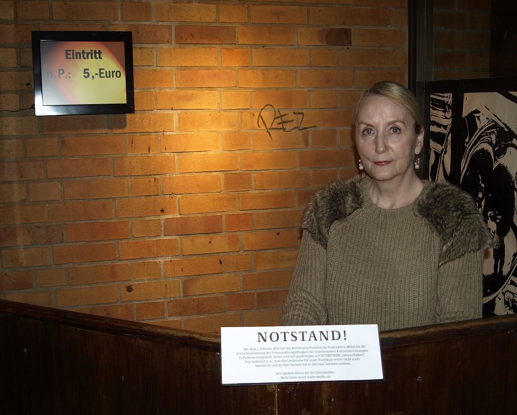 Seit Mittwoch sitzt Ursula Kleinert hinter dem Kassentresen am Eingang der “Wabe” im Thälmannpark. Denn jene Honorarkraft, die bisher die Eintrittskarten verkauft hatte, muss seit dem 1. Februar zu Hause bleiben – sie ist dem Notstands- Edikt von Kulturstadtrat Torsten Kühne zum Opfer gefallen. Also muss die Leiterin der “Wabe” die Tickets nun selbst ausgeben – denn auf das Eintrittsgeld zu verzichten, geht gar nicht: Es ist oft die einzige Quelle, aus der die auftretenden Künstler bezahlt werden.