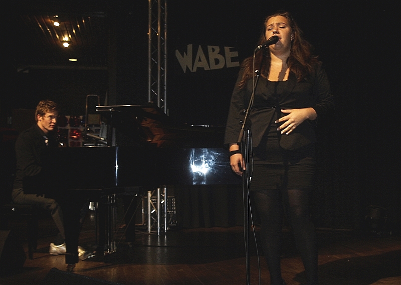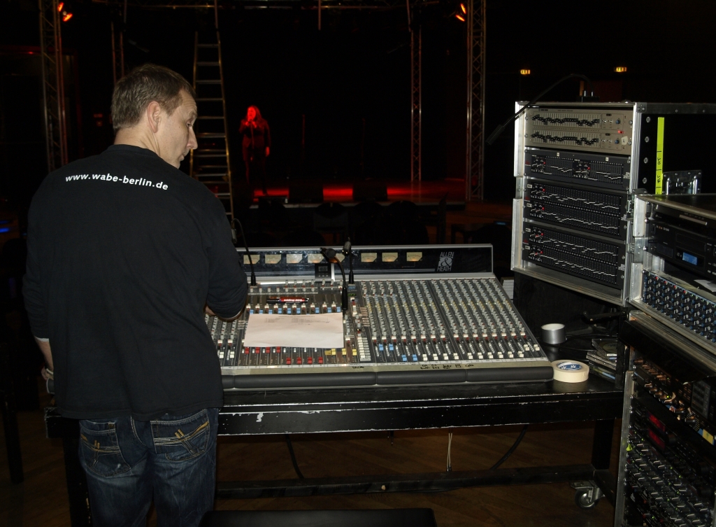 Im Saal laufen die Proben für die abendliche Veranstaltung. Ein Vorentscheid für den Internationalen Songwriterwettbewerb „Troubadour Minstrels“ steht auf dem Programm. „Troubadour“ ist ein Wettbewerb, bei dem die Künstler ausschließlich mit akustischen Instrumenten auftreten. Organisiert wird die Veranstaltungsreihe von der aus den USA stammenden Prenzlauer Bergerin Mckinley Black. Sie war mit dem Wettbewerb, der seit 2009 in der „Wabe“ stattfindet, zuvor im „Quasimodo“ und im Schlot. Die Wabe, sagt Mckinley Black, sei etwas ganz Besonderes: „Hier kann man auch mit Künstlern auftreten, die noch keinen großen Namen haben –