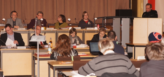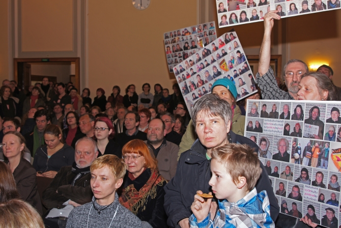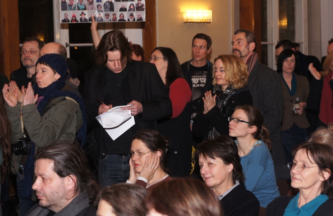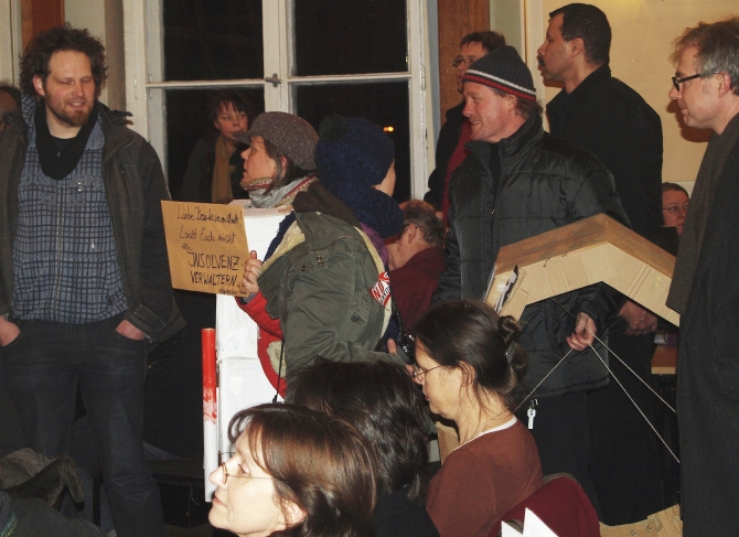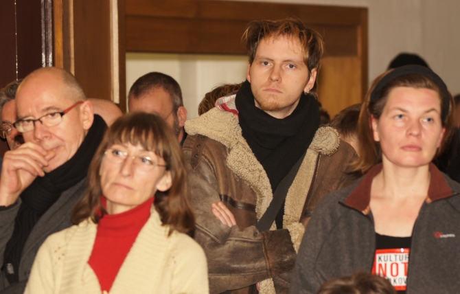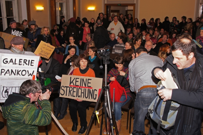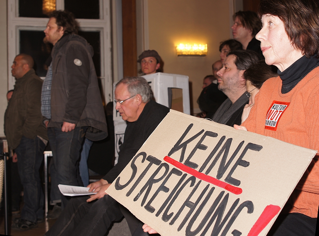 Es schien als hätten sich alle 200 Demonstranten, die zuvor am Eingang des Hauses gegen den Kulturabbau demonstrierten hatten, nun den BVV-Saal in Besitz genommen.