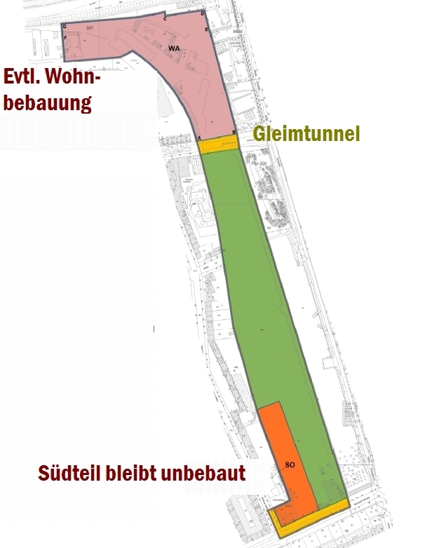 Der von SPD, CDU und den Grünen eingebrachte Beschluss (siehe Download unten) empfiehlt der BVV, sich beim Senat dafür einzusetzen, dass das Land Berlin eine drei Hektar große Fläche südlich des Gleimtunnels vom Eigentümer CA Immo (ehemals Vivico) erwirbt, die das Bezirksamt Mitte dann schnellstmöglich als Grünfläche ausweisen soll. Bei einer Umsetzung des Beschlusses wäre die drohende