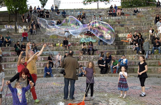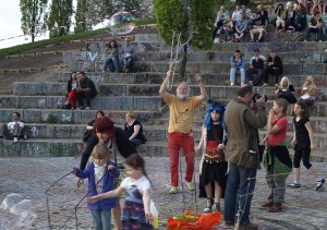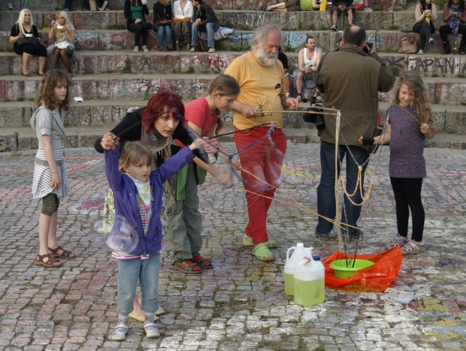 Doch die Kinder waren schon da und hatten ihren Spaß mit Riesen-Seifenblasen und dem Entzünden des Lagerfeuers.