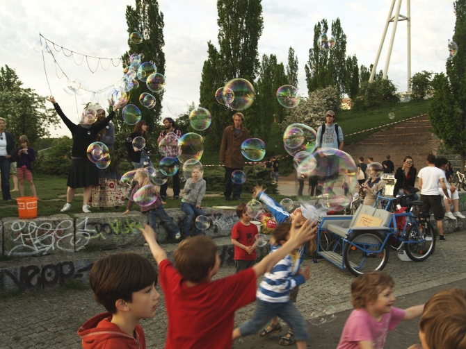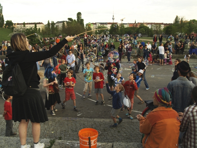 Und da war sie wieder, diese unverwechselbare Atmosphäre des fröhlich-gelassenen Nebeneinanders.Der Mauerpark ist noch immer der besondere Ort, wo Unterschiedliches nicht zu Kollisionen führt und wo selbst scheinbare Provokationen weggelächelt werden.